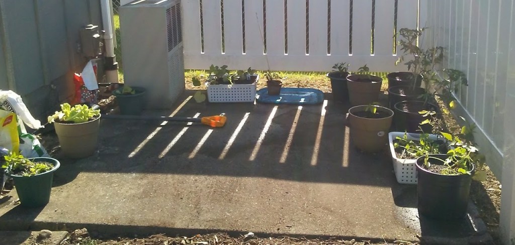 One of the big things I overlooked the first year I had my garden was the sunlight the area would receive. Due to the northern exposure and the shadow of an adjacent apartment building, I learned that more than half of my available growing area would be shaded for a good part of the day. Knowing that fact, I opted to plant my sun-loving plants such as tomatoes in containers and place them in the sunniest part of the patio area to help them obtain maximum growth.